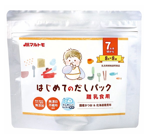 かつお節・だしと、海洋資源を通じて健康と食文化の発展に貢献するマルトモ株式会社(社長:今井均 本社:愛媛県伊予市)は、離乳食を始めるパパやママに向けた「はじめてのだしパック8g×8」を、2022年7月1日より発売します。