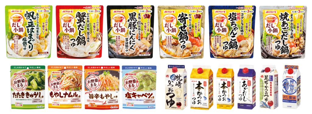 「だし小鍋 帆立はまぐり塩鍋つゆ」「だし小鍋 蟹だし鍋つゆ」「だし小鍋 黒豚にんにく醤油鍋つゆ」