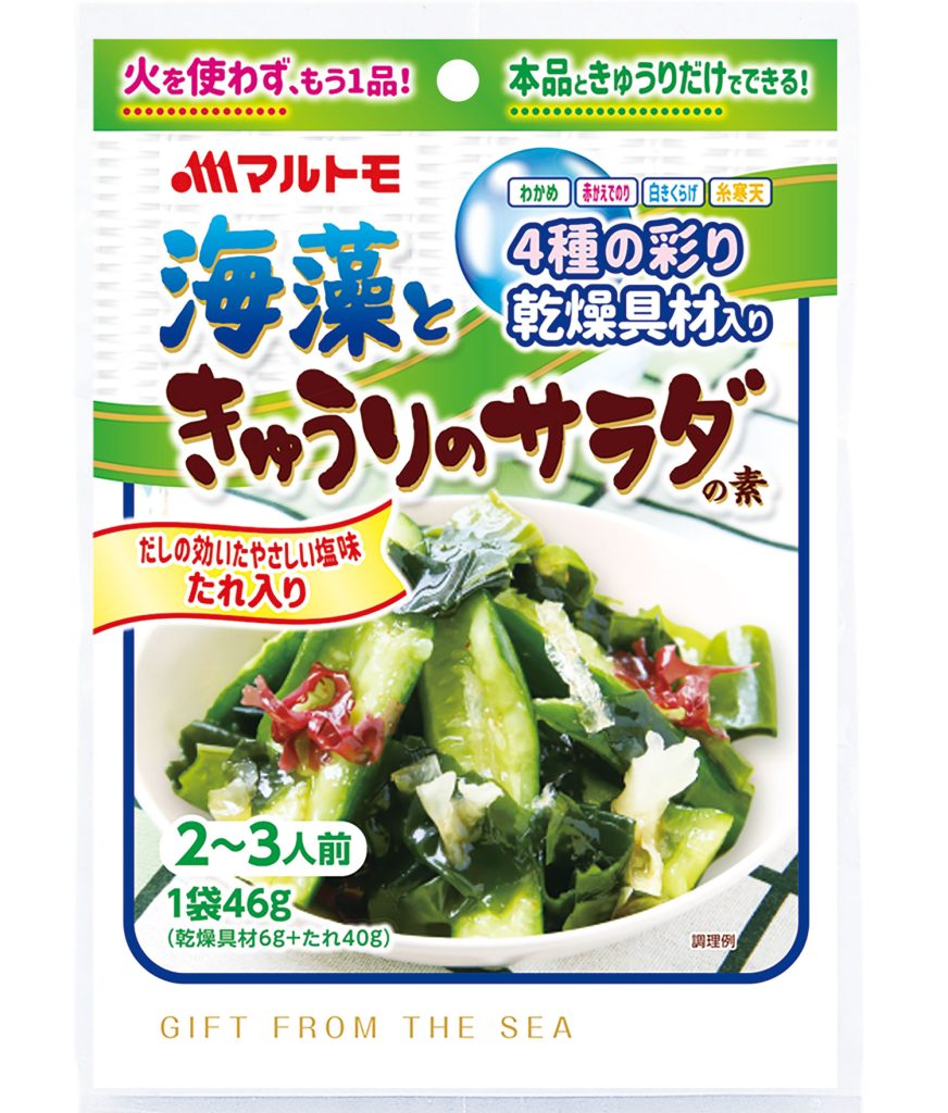 また、家庭内調理頻度が増えたことで、メニュー決めや、食事のマンネリ化に悩む人も多くいます。このような生活背景を受け、マルトモはだしの効用を活かした新たなメニュー提案として、海の野菜(sea vegetables)ともいわれている海藻に着目。加熱調理不要で簡単に食卓を彩る一品が完成する本品を発売します。
