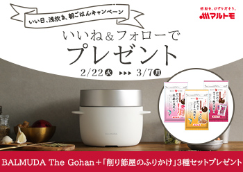 マルトモ株式会社(社長:今井均 本社:愛媛県伊予市)は、需要が高まるおうちごはんをさらに楽しんでいただくため、話題の炊飯器「BALMUDA The Gohan」が当たるInstagramいいね&フォローキャンペーンを実施いたします。