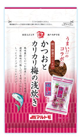 マルトモ株式会社(社長:今井均 本社:愛媛県伊予市)はソフトタイプふりかけ「削り節屋のふりかけ」シリーズの新商品「かつおとカリカリ梅の浅炊き40g」を2021年3月1日より発売します。