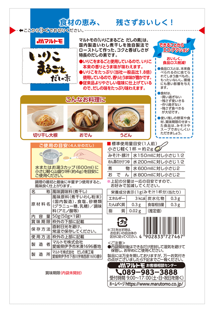 いりこまるごとだしの素 50g