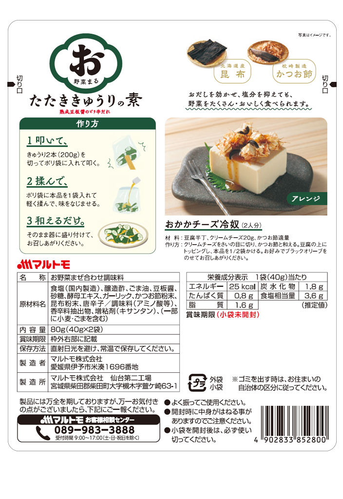 「お野菜まる®」 たたききゅうりの素2P