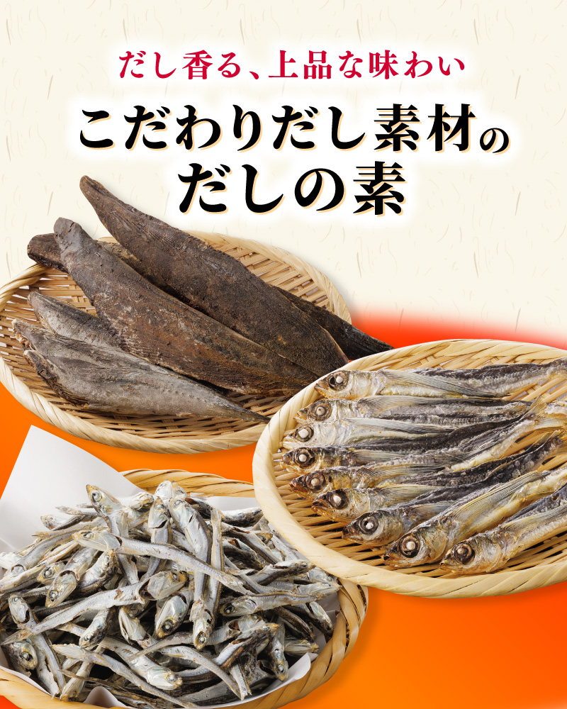 鰹節屋、だし屋ならではの「こだわりだし素材」を使用しただしの素です。