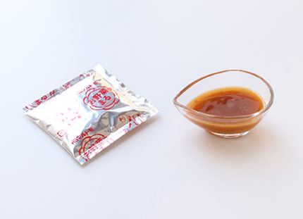 海藻ときゅうりにピッタリなだしの効いたピリ辛なたれ付きです。熟成豆板醤を使用し、旨辛に仕上げたあとを引くおいしさです。