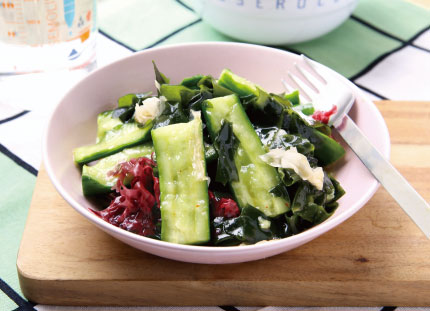 きゅうりさえあれば、彩りのよい海藻の、だしの効いた食べやすいサラダが作れます。