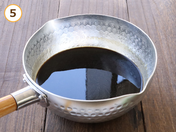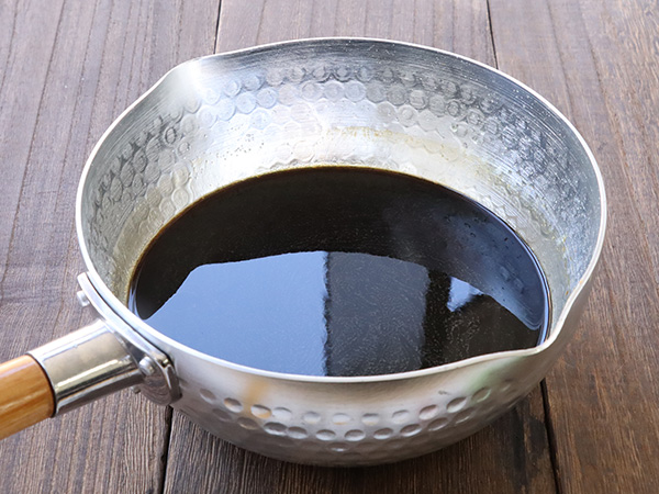 かえしの比率は、しょうゆ:砂糖:本みりん=5:1:1。砂糖と本みりんは同量、しょうゆはその5倍です。